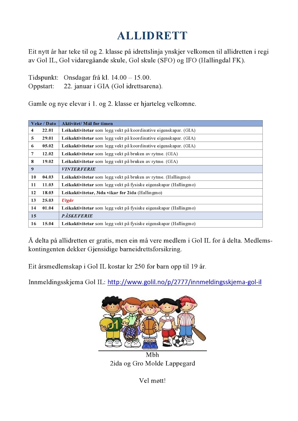 Dette er ment for hyttefolk og andre tilreisende som er på Gol i vinterferie og for lokale barn og unge.
