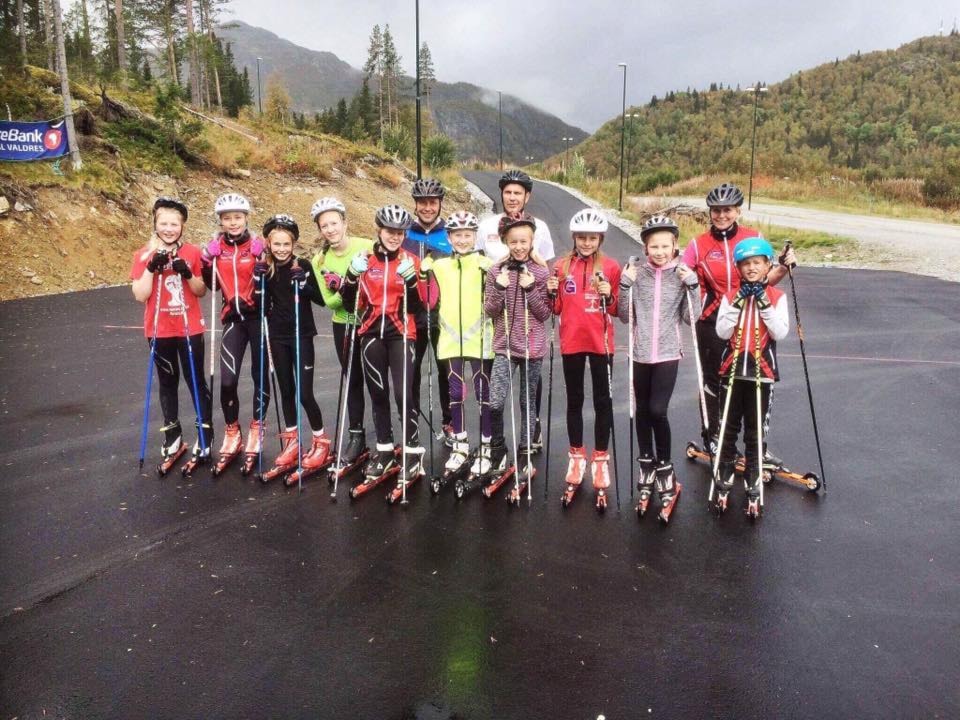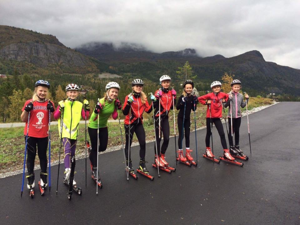 Vi startet fredag ettermiddag med "tilvenningsøkt" i rulleskiløypa. Det viktigste på rulleski er å kunne bremse, og det satt hos samtlige i løpet av første økta. Alle kjørte da kontrollert ned den største bakken😀